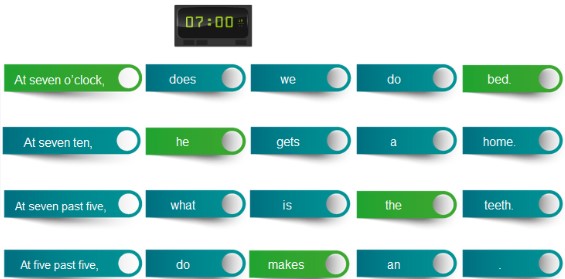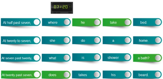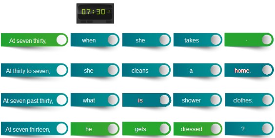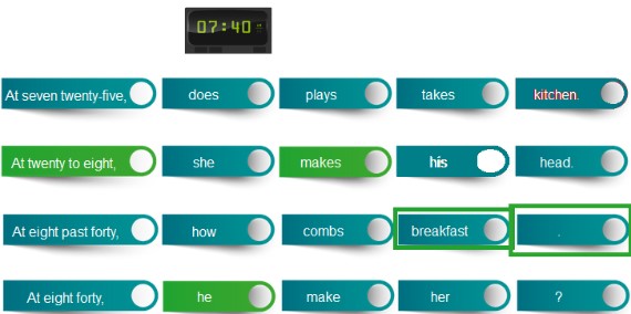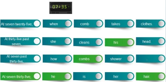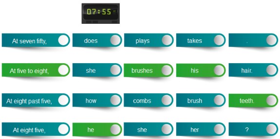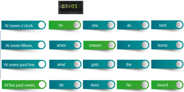 En este ejercicio hay que seleccionar las partes correctas para formar una frase. Las respuestas son: